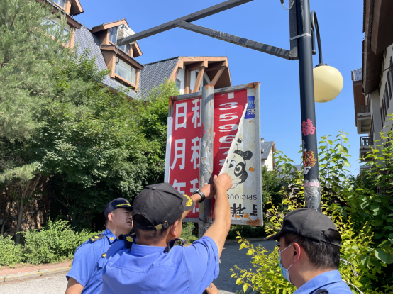 活动中,池西大队对各类违规横幅广告、破损广告、小广告和过期破损宣传标语,以及与景区景点和自然景观不相融,与人们欣赏习惯和审美方式不相契合的公益广告、景观小品进行了分类逐步清理。对于沿街门店上方悬挂的促销类广告横幅,执法人员主动上门与门店业主沟通宣讲相关法律法规,劝导其自行清理广告横幅。对辖区沿线破损的公益广告横幅联系相关单位立即更换,对于无法联系到责任人的破损横幅及过期横幅、各类违规小广告进行统一清理摘除。此次行动,池西大队共清理各类违规、破损广告横幅30余处,乱贴乱画小广告50余处。